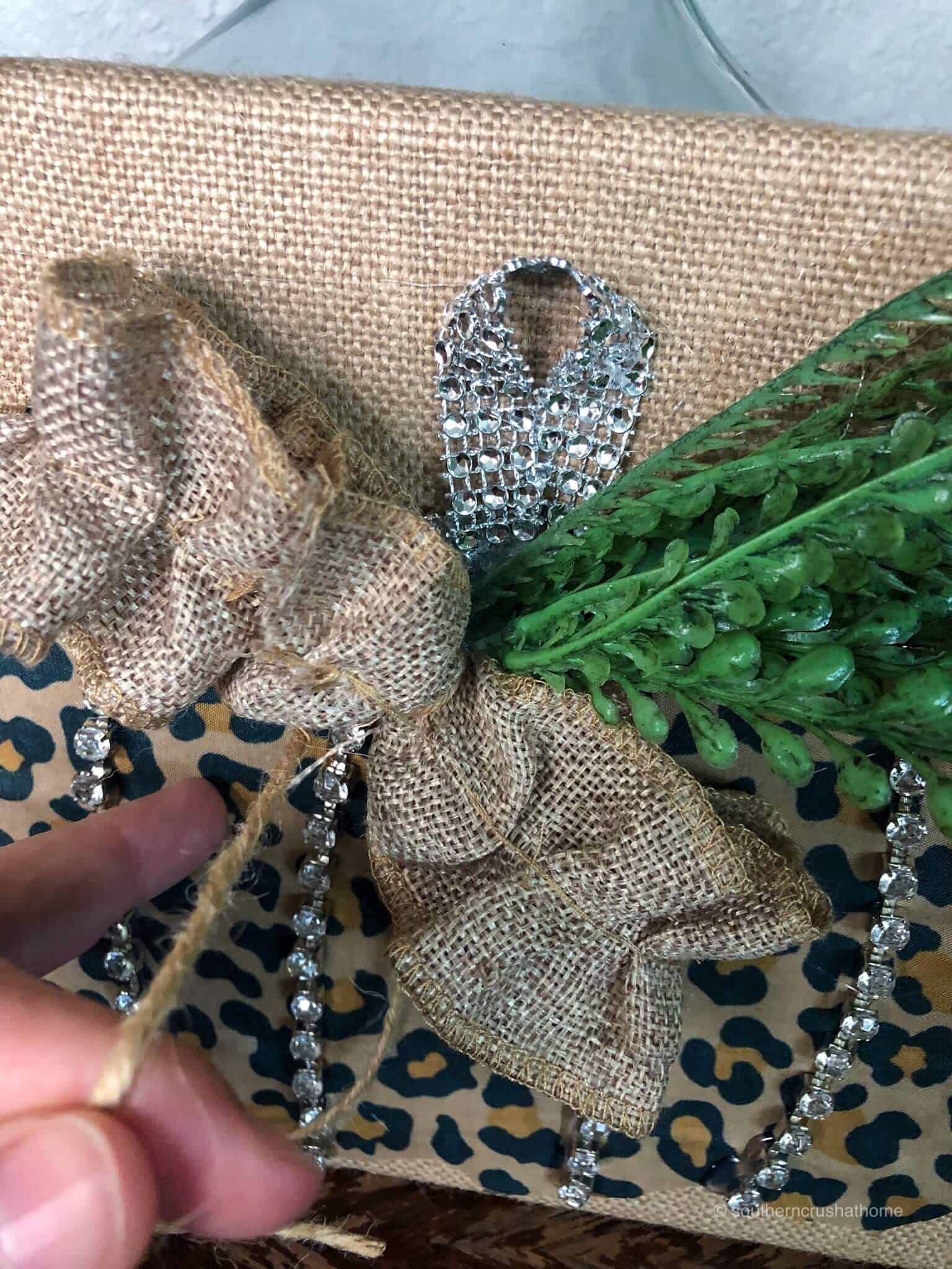 • Attach a burlap bow to the canvas.