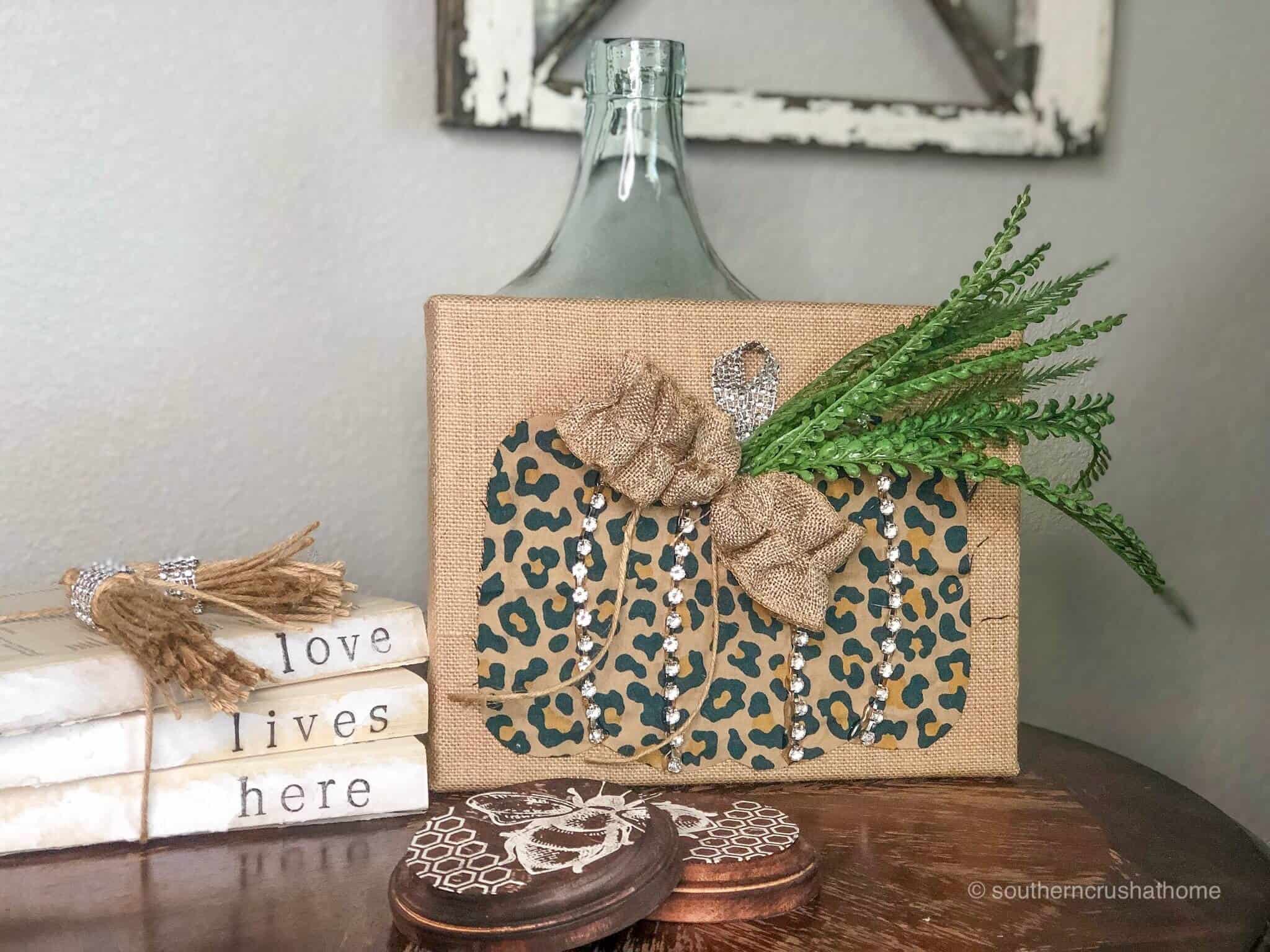 Make an easy DIY leopard pumpkin wall art out of fabric and burlap. It's such a simple craft!