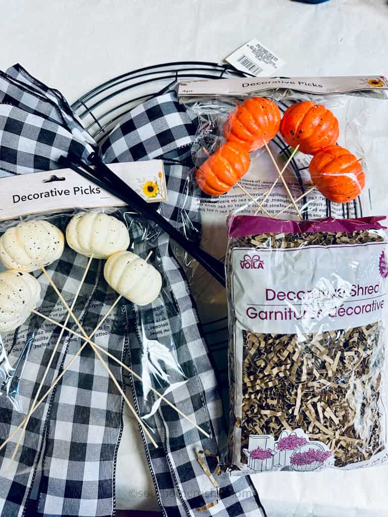 - 2 packages of small pumpkins (they are on skewers) I got one in orange and one in white