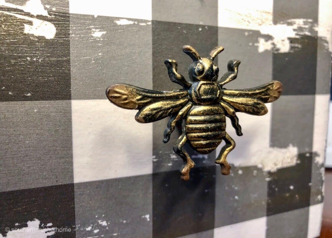 - Take new metal drawer pull & apply gold wax sparingly with dry cloth or fingers until desired look is achieved.