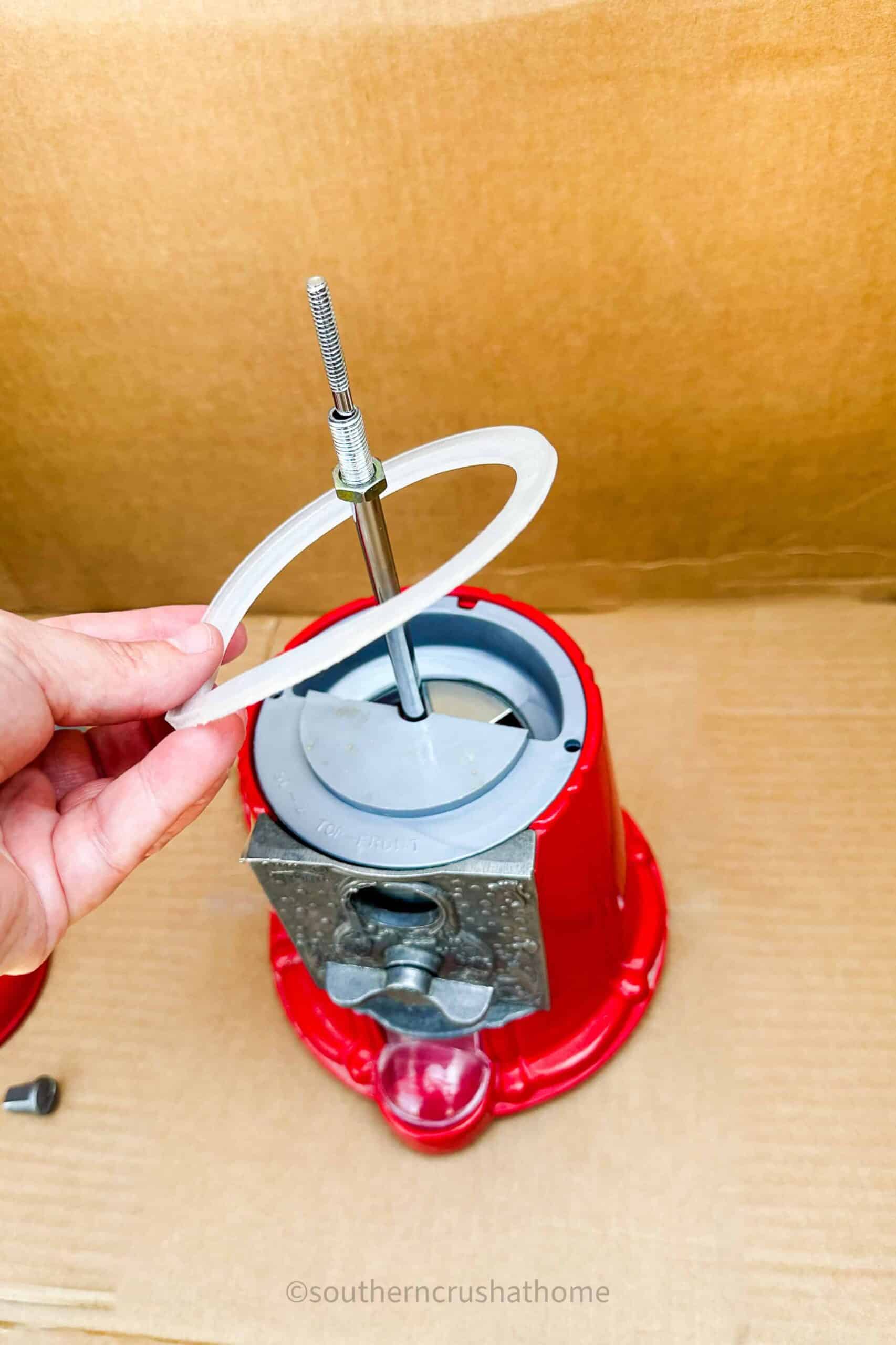 Once the paint is completely dry, bring your pieces back inside and start reassembling the gumball machine. This is where everything comes together!