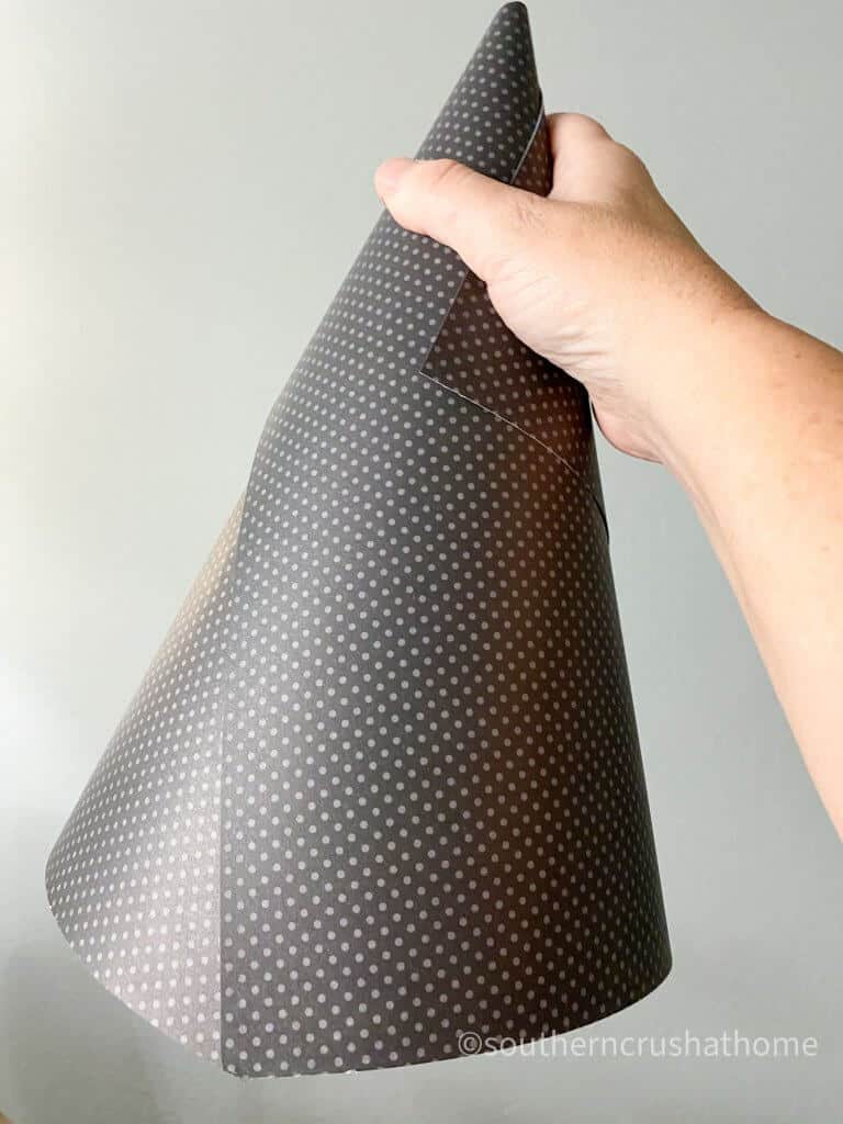 - Take two pieces of scrapbook paper and create a cone shape using THIS FREE PATTERN. Download Pattern HERE.
