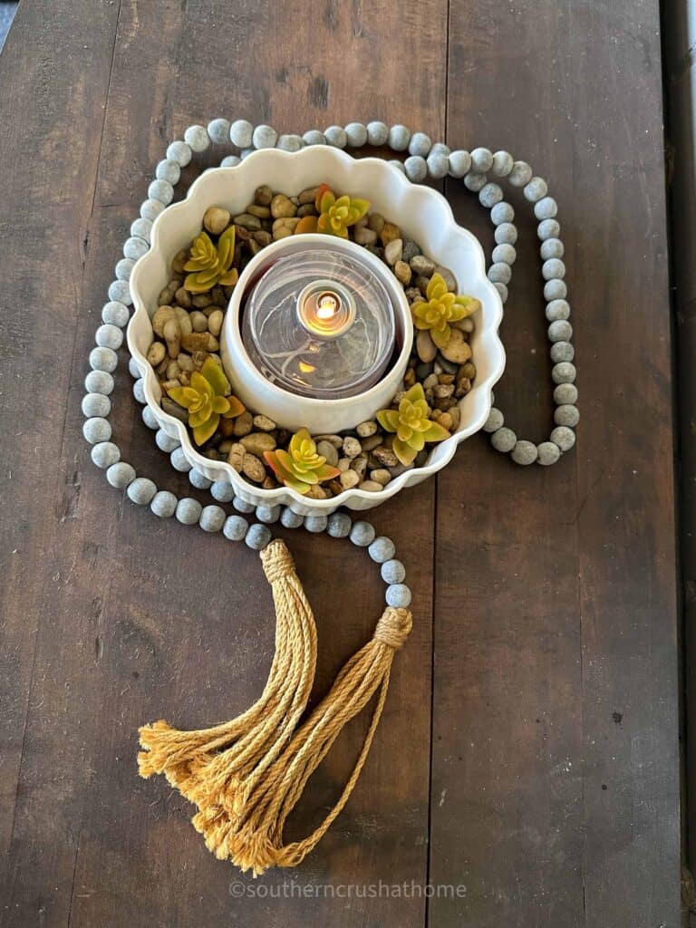 - Decorative Embellishments: Depending on the depth of your bowl, this can be a variety of things. I used faux succulents.