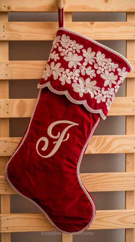 A simple yet classic way to personalize a stocking is by adding a monogrammed initial.