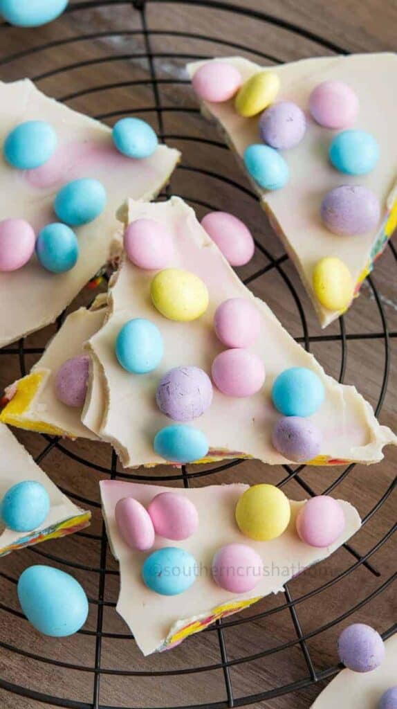 Easy White Chocolate Bark with Pastel Candy for Easter